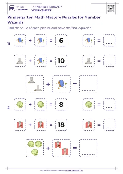 Whizki Learning Count & Play Puzzle Parade gives 6-year-old children a joyful introduction to preschool math through bright, story-style picture problems and friendly visual supports. The Whizki Learning printable worksheet invites young learners to count, compare, and solve simple puzzles with hobby-horses, tacos, tables, and shapes, turning number practice into playful discovery.