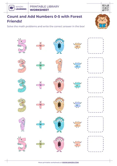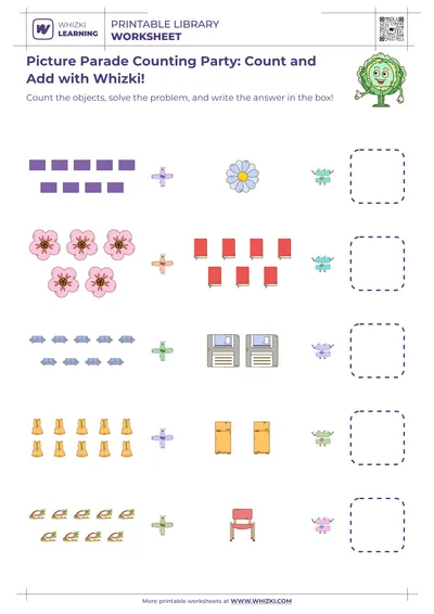 The Whizki Learning counting worksheet offers parents and teachers an easy, printable resource for screen-free math enrichment at home or in the classroom. The Whizki Learning activity sheet requires only a pencil or crayons and can be reused for practice, progress checks, or math centers. Education experts at Whizki Learning carefully aligned the worksheet with early math milestones so that caregivers can confidently support counting, number recognition, and beginner visual addition in a playful, low-stress format.