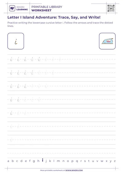 The Whizki Learning letter D worksheet strengthens fine-motor control by guiding 4-year-olds through progressive tracing lines, improving pencil grip stability and stroke direction.