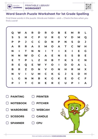 Building early spelling and vocabulary with a word search puzzle worksheet helps 5-year-olds notice letter sequences, strengthen visual memory, and develop concentration, all foundational skills for fluent reading and confident writing.