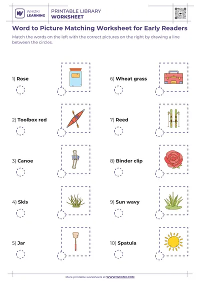 Matching printed words to pictures on the Kindergarten Word to Picture Matching Vocabulary Worksheet helps children connect written language to real objects, which strengthens vocabulary, reading comprehension, and long-term word memory.