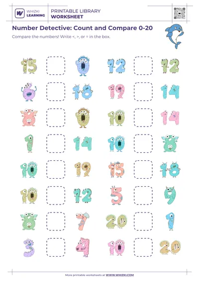 Every Whizki Learning worksheet is created by qualified educators and reviewed against early childhood math standards to support classroom and home learning. The Count and Compare 0-9 worksheet can be used as a quick math center, a small-group activity, or a focused home-practice page, giving caregivers and teachers flexible options. Clear layout, generous spacing, and charming artwork support young hands and developing attention spans. Whizki Learning resources aim to empower adults with research-informed tools that keep early math engaging, confidence-building, and developmentally appropriate.
