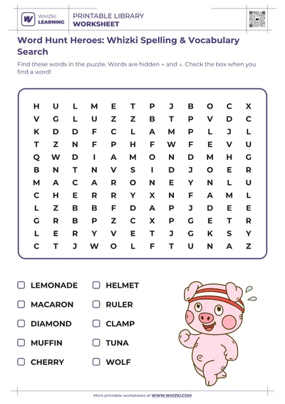 Flexible Whizki Learning word search activities fit easily into preschool classrooms, homeschool routines, or tutoring sessions focused on early reading and writing skills. Parents and teachers can print the Whizki Learning resource repeatedly for ongoing spelling review, focused vocabulary practice, and joyful conversations about new words discovered inside the engaging puzzle grid.