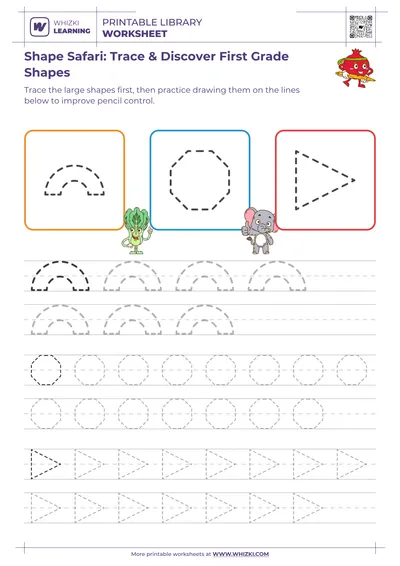 Whizki Learning Shape Tracing Worksheet introduces preschool children to geometric shapes through playful tracing paths, turning early math exploration into a hands-on, confidence-building adventure for 5-year-olds.