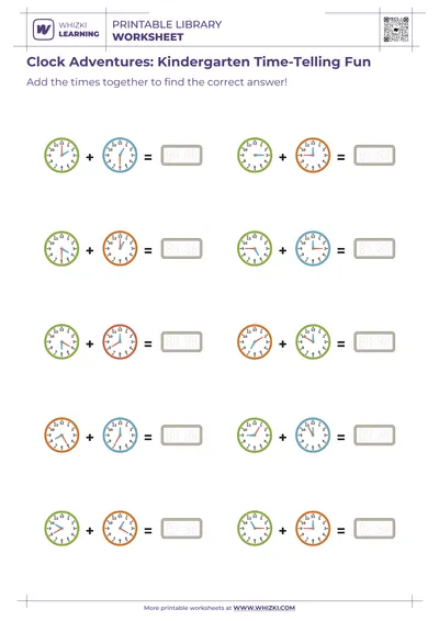 The Whizki Learning Tick-Tock Time Fun worksheet gives 4-year-old children a gentle first experience with clocks. Young learners match simple digital times to large analog clock faces, helping children see how numbers on a screen connect to hands on a clock. The Whizki Learning design team includes experienced early childhood educators, so every activity on the worksheet respects kindergarten attention spans and supports real-world readiness.