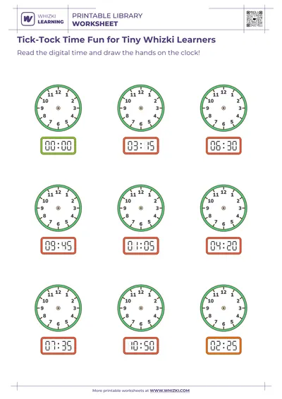 Every Whizki Learning printable worksheet for kindergarten receives expert review from licensed teachers and children's curriculum specialists. The Whizki Learning team tests each activity with real preschool and kindergarten classrooms, adjusting difficulty, fonts, and layout for maximum accessibility and engagement. Parents and teachers can confidently use the time-practice worksheet as a standalone activity, a homework extension, or a reusable center activity by laminating pages or placing pages in dry-erase pockets.