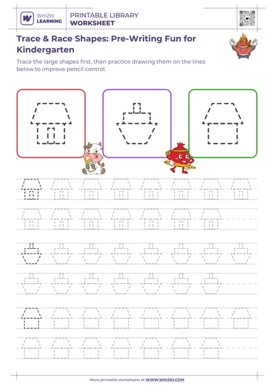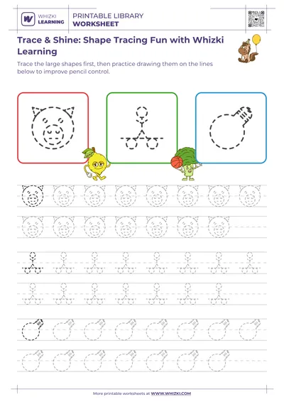 Trace & Shine: Shape and Object Paths for Little Writers from Whizki Learning offers a playful pre-writing journey for curious 5-year-olds. The Whizki Learning worksheet invites children to trace simple shapes and familiar objects, building confidence with every guided line. Expert early-elementary educators designed the tracing progressions to support children who are just beginning formal reading and writing. Parents and teachers can use the printable worksheet as a gentle warm-up before handwriting or phonics lessons.
