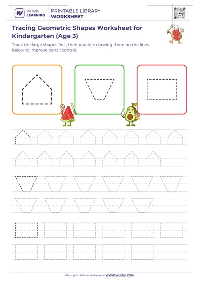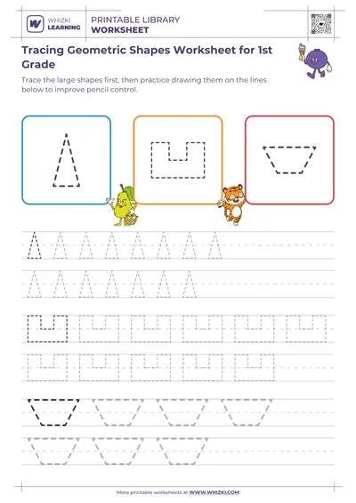 Parents and teachers can use the Tracing Geometric Shapes Worksheet as a short daily warm-up, asking children to trace slowly, name each shape aloud, and then color the completed shapes.